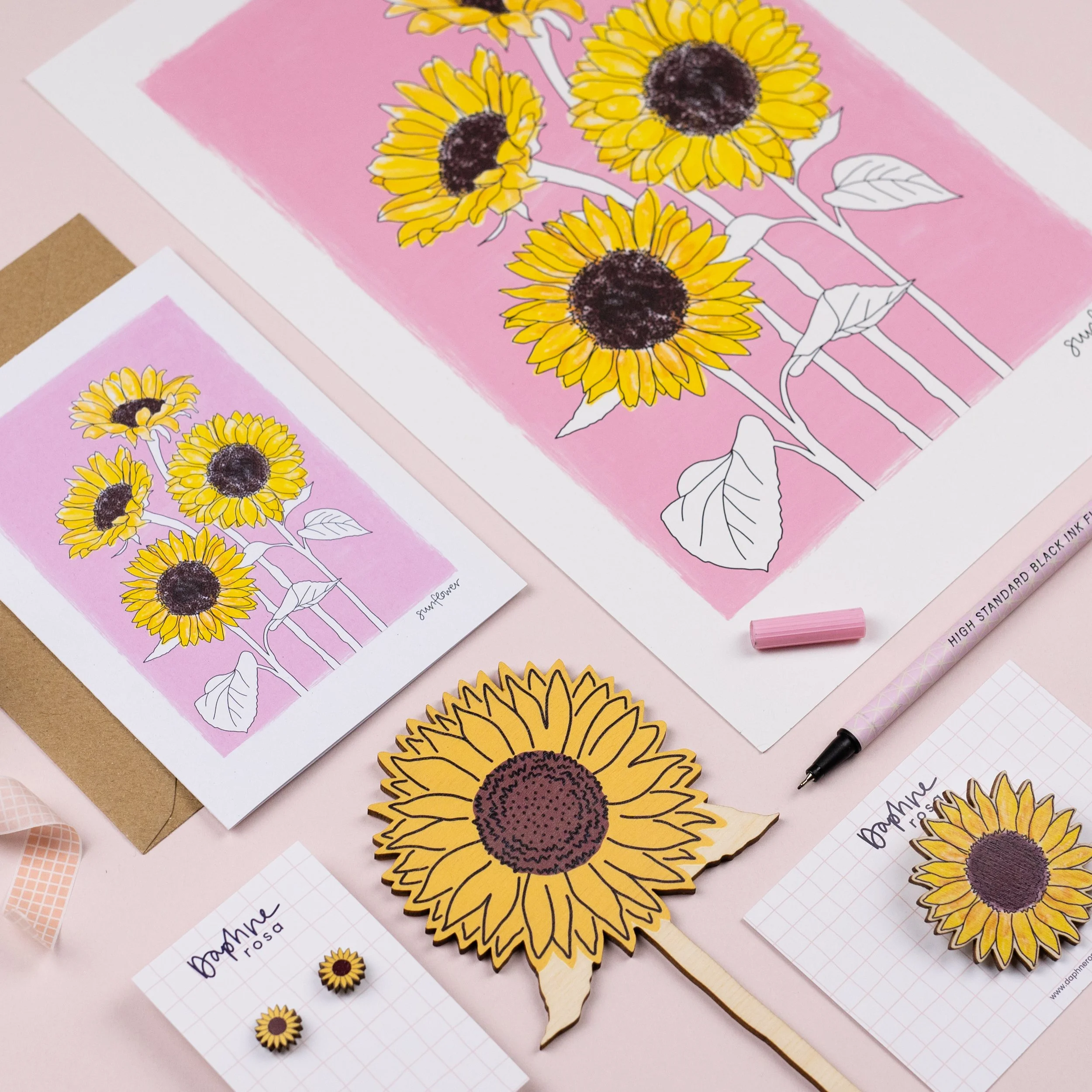 Sunflowers are heliotropic as they move in the direction of the sun. Their seeds follow the Fibonacci sequence and are full of calcium so make an excellent healthy food source. They are a favourite in the shop too with their cheerful nature as the earrings, brooch and wooden flower are all best sellers.