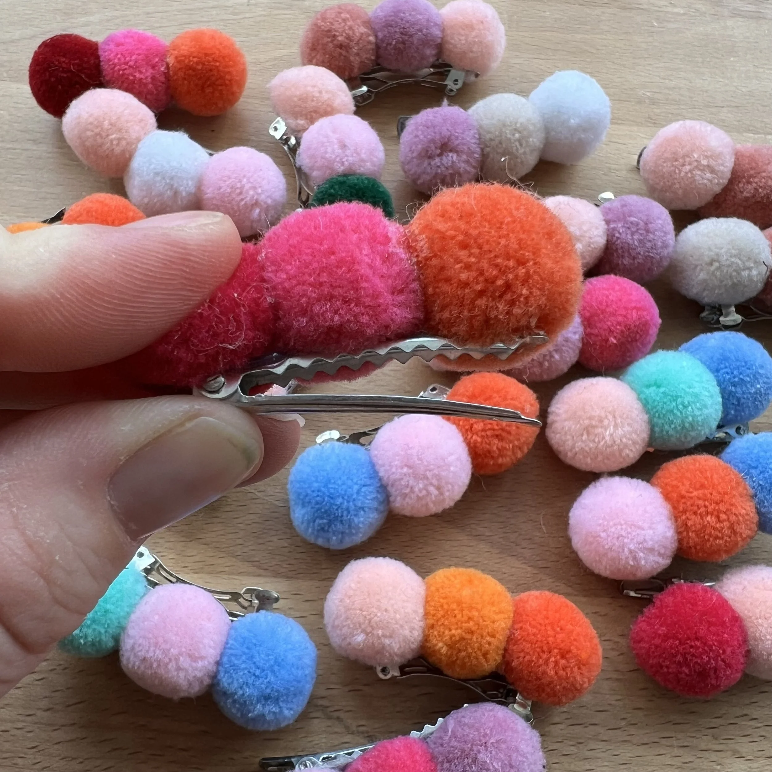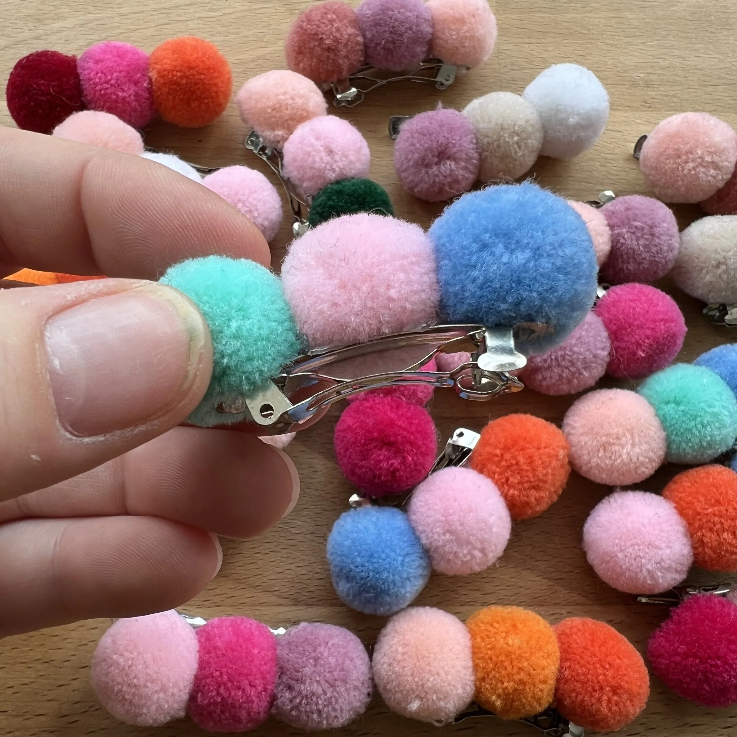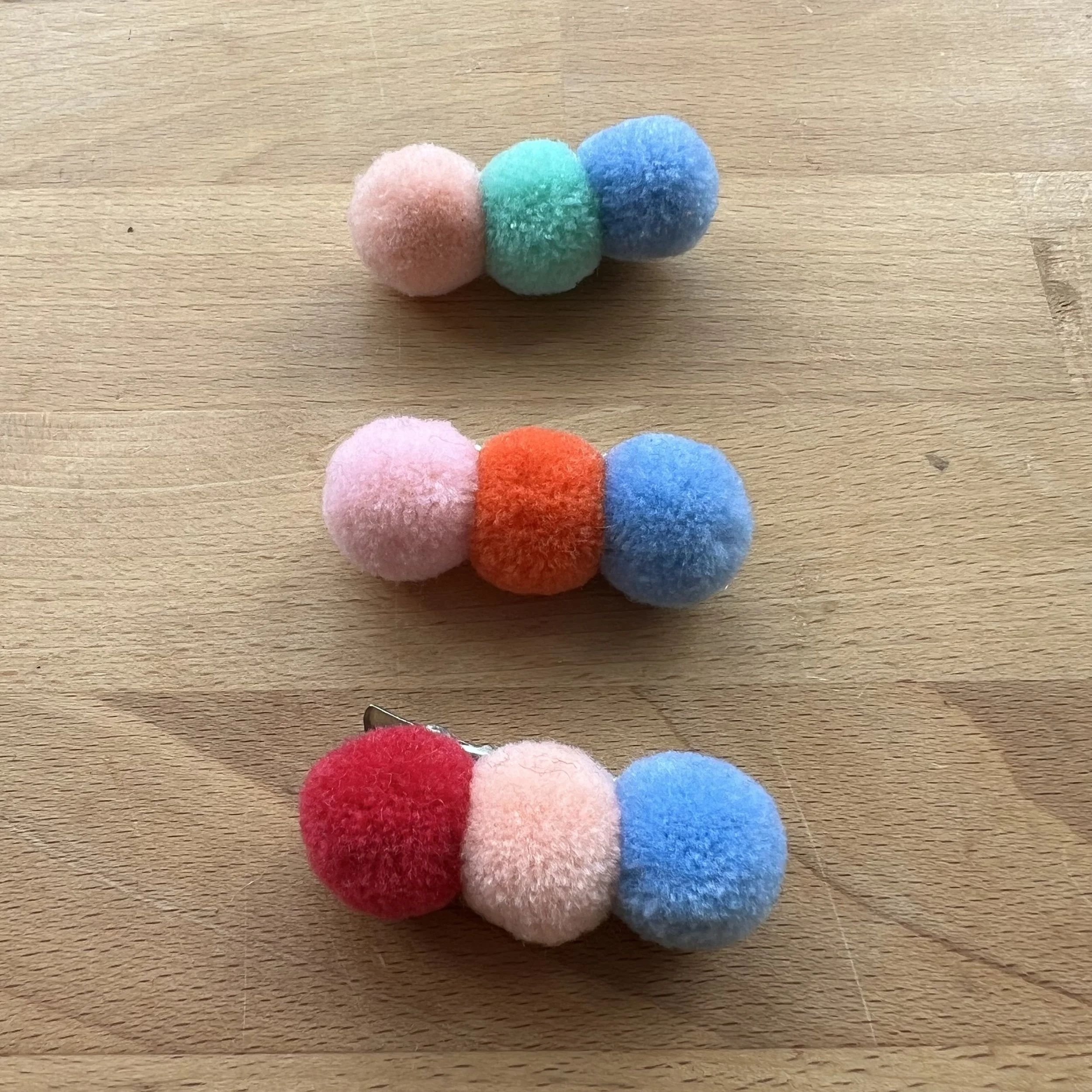 Set of 3 pom pom hairclips (pictured together) in a variety of colour combinations.